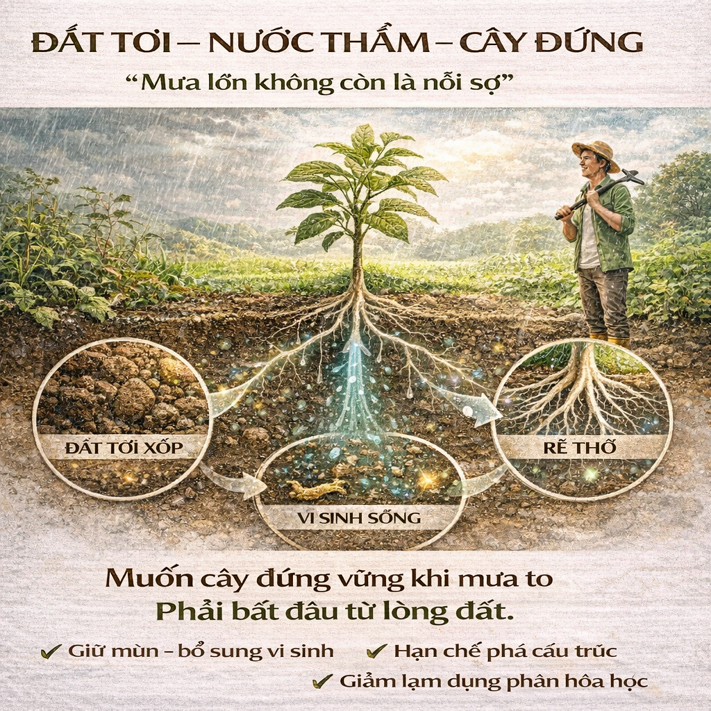 + Nuôi cỏ, hạn chế xới phá cấu trúc