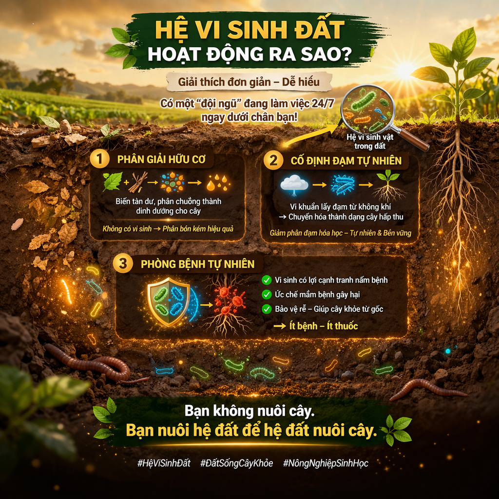 Không có vi sinh → phân bón cũng khó phát huy hiệu quả.