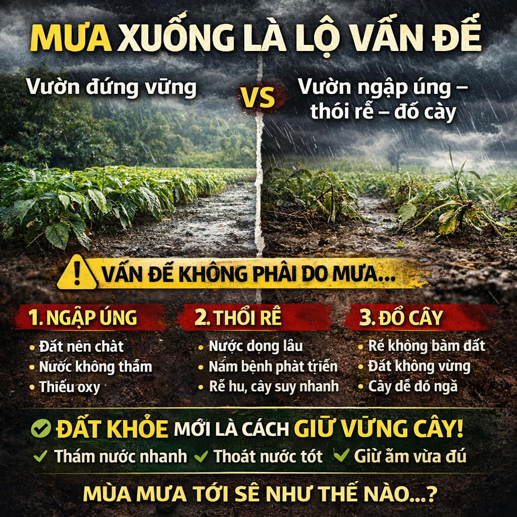 Vườn kia: ngập úng, rễ thối, cây đổ