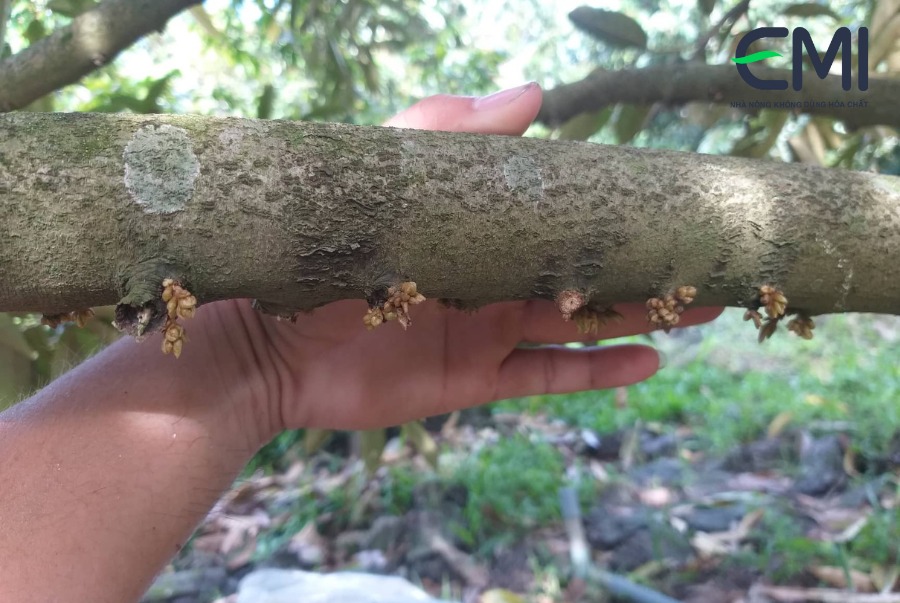 Mức ẩm đất 40%: Một số mầm hoa (mắt cua) ở cành già bắt đầu “nổi nâu” – dấu hiệu đạt chuẩn.