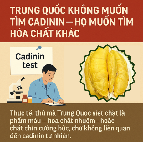 Thực tế, thứ mà Trung Quốc siết chặt là phẩm màu – hóa chất nhuộm – hoặc chất chín cưỡng bức, chứ không liên quan đến cadinin tự nhiên.