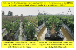 Tại Long An, dùng vi sinh EMINA phòng trị héo xanh trên cây cà chua...
