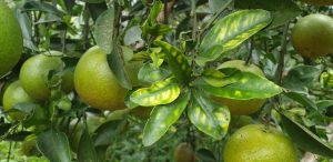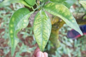 Vàng lá gân xanh hay còn gọi là bệnh greening do vi khuẩn Liberobacter asiaticum ...