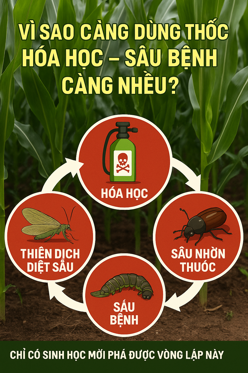 Phun thuốc → sâu nhiều → phun mạnh hơn → sâu càng kháng → phá vỡ hệ sinh thái.