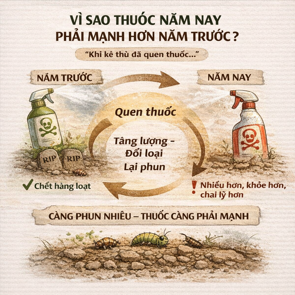 Sâu càng nhiều → thuốc càng phải mạnh
